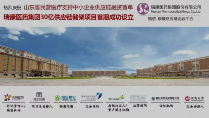 11月6日,瑞康医药集团30亿供应链储架项目首期成功设立,这也是山东省民营医疗支持中小企业供应链融资的首单。